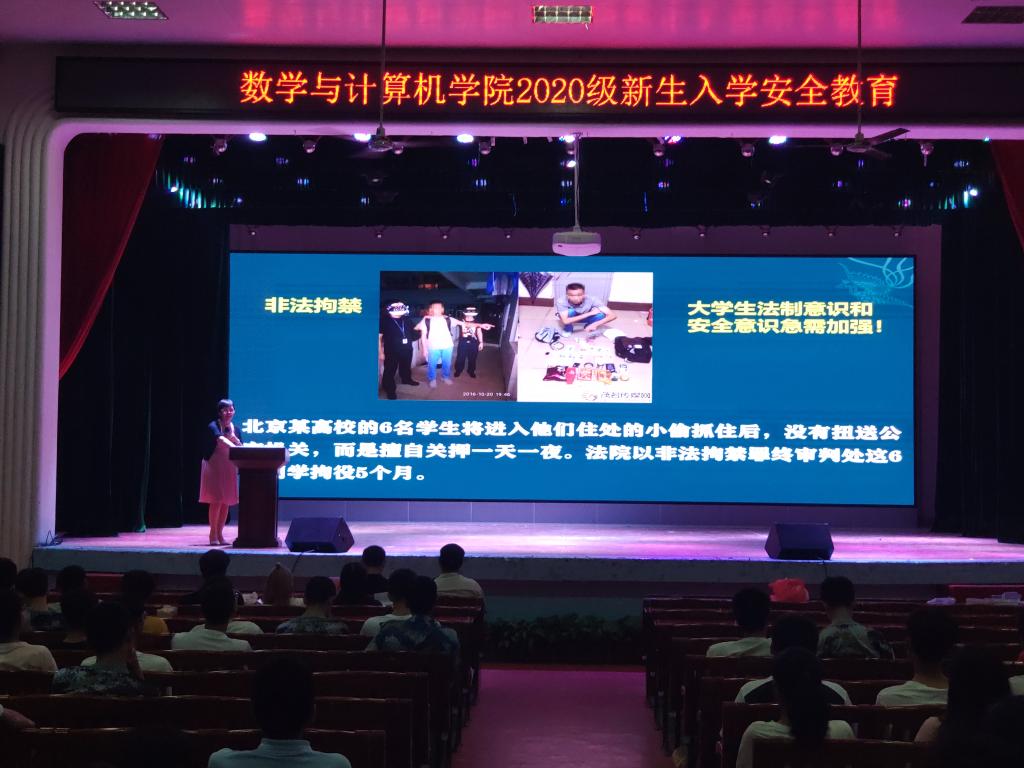 党委副书记周荣伟在东区礼堂为2020级新生做新生入学暨国庆(中秋)安全教育专题讲座。