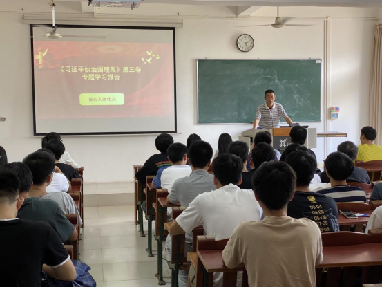谢仕义为同学们讲解了《习近平谈治国理政》第三卷出版的重大意义、主要内容和如何学习贯彻落实书中习近平新时代中国特色社会主义思想,建议青年学子要了解历史,坚持道路自信、文化自信、理论自信和制度自信,一切从实际出发,不忘初心、牢记使命,弘扬理论联系实际的优良学风,要真情实感读原著、真心实意学原文、真下工夫悟原理,做到“知其然更知其所以然”。