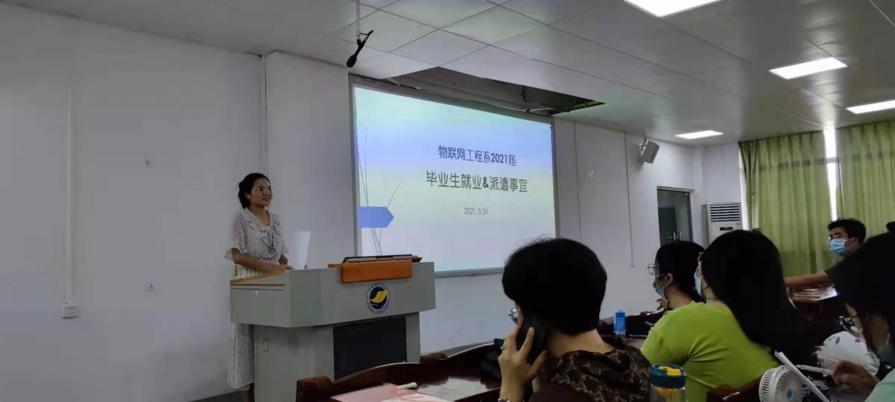 5月31日上午,物联网工程系在二教A1-103召开2021届毕业生毕业动员暨毕业派遣工作会,系主任车向前、副主任郑赞红、专业教师代表周香庭和辅导员车晓锋以及物联网工程、信息管理与信息系统专业2021届毕业生共150人参加。会议由车向前主任主持。
