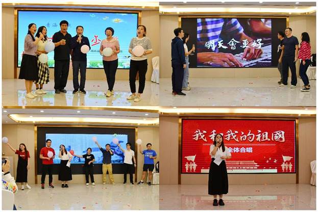 领导、党委委员共同唱响《早安隆回》,苏青老师为大家高声歌唱《我们的祖国歌甜花香》,辅导员老师唱起了《明天会更好》,全体老师共同高唱《我和我的祖国》,其他老师也纷纷表演了精彩的节目,将老师们的心紧紧地凝聚在了一起。