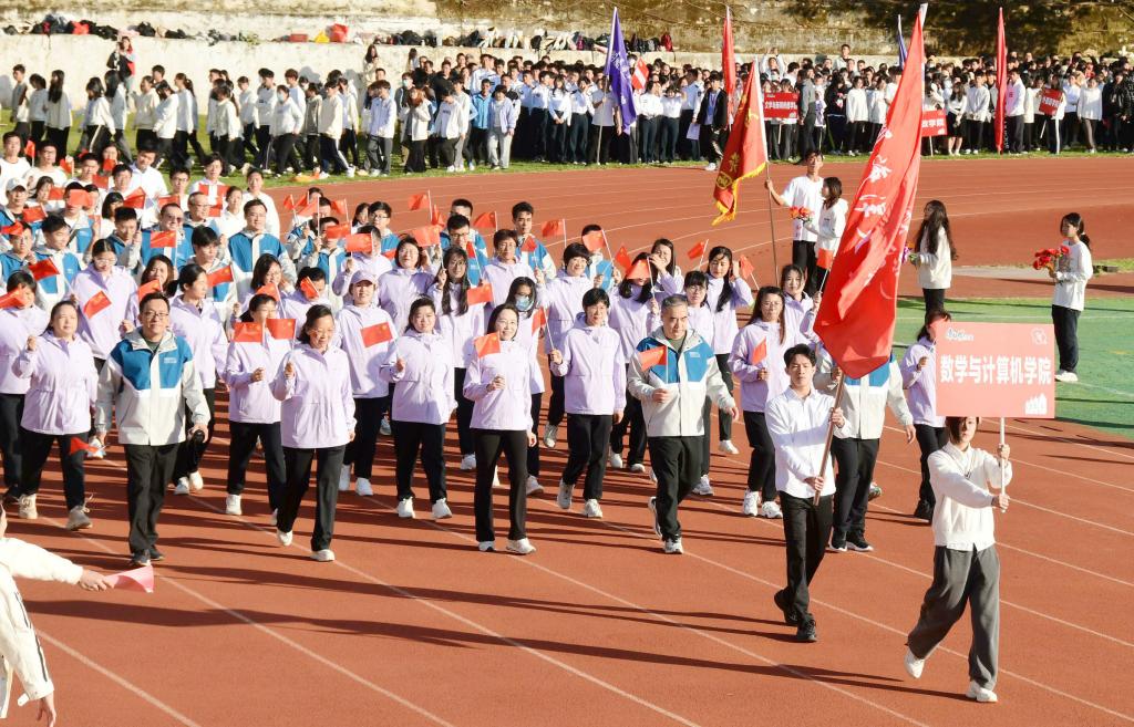 开幕式上,我院师生方阵身着整齐的队服,迈着坚定的步伐,精神抖擞地走过主席台。他们意气风发,斗志昂扬,高声喊出了“数计数计,百年大计;数计数计,永争第一!”的响亮口号,仿佛已经迫不及待要在这个赛场上展现自己的实力。