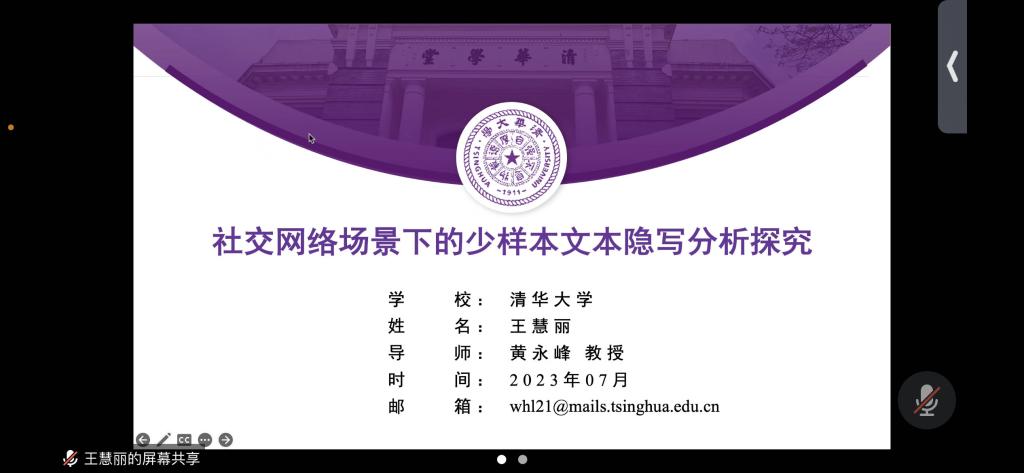 2023年广东省“多媒体信息安全”研究生暑期学校由广东省学位委员会、广东省教育厅主办,广东海洋大学承办,广东省研究生教育创新计划项目(No.2022SQXX_020)资助,旨在进一步加强省内外高校交流,更好地学习多媒体信息安全研究的发展前沿,特别是信息隐藏、加密、隐写、水印、取证等。本次研究生暑期学校充分利用研究生(博士、硕士)教育的优质资源,为研究生搭建高水平的学习交流平台,拓宽研究生的学术视野和科研思路,提高研究生的创新意识和科研能力,促进优质教学资源共享。举办期间,组织学员参观考察黑料网 有关实验室、水生博物馆、中西区校园文化等活动,取得良好的效果。7月28日上午进行闭幕式,由黑料网 黄小玲老师主持,她感谢大家对2023年广东省“多媒体信息安全”研究生暑期学校的大力支持,期待未来有机会更进一步合作和交流。