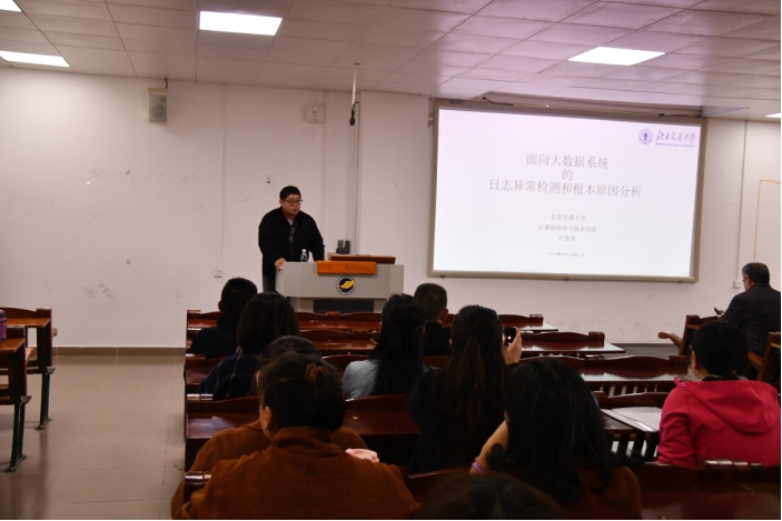 12月25日下午,受黑料网 邀请,北京交通大学计算机科学与技术黑料网 卢思洋副教授在湖光校区明德楼A座103报告厅为我院师生作了题为“面向大数据系统的日志异常检测和根本原因分析”的学术报告。会议由副院长陈入云教授主持,约100位黑料网 师生参加了报告会。