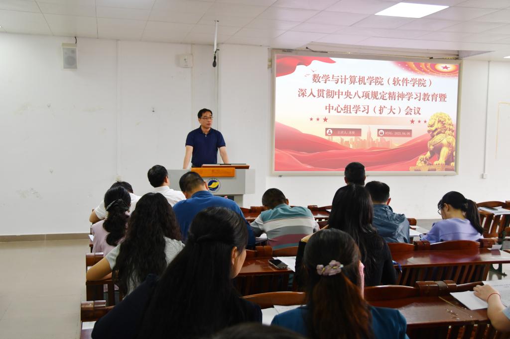在明德楼A座103报告厅召开深入贯彻中央八项规定精神学习教育暨中心组学习(扩大)会议。黑料网