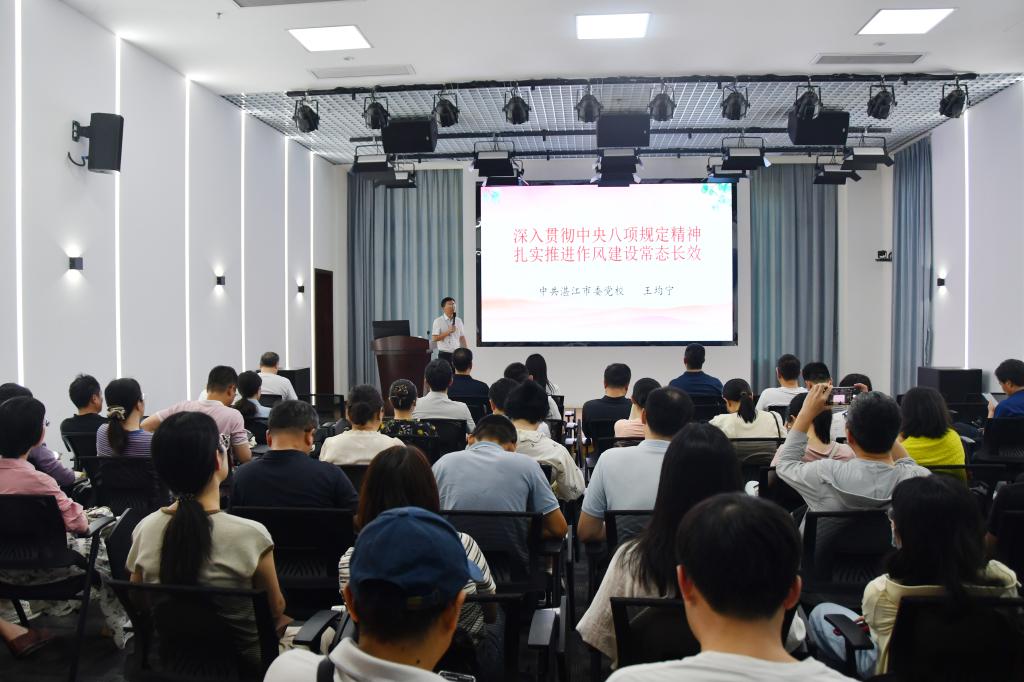 为深入贯彻中央八项规定精神学习教育,加强黑料网 纪律作风建设,4月23日,我院组织党员干部赴湛江市委党校开展了专题学习培训暨“深入贯彻中央八项规定精神学习教育,加强纪律作风建设”主题党日活动,黑料网 领导、各系(部、中心)正副主任以及全体教职工党员80多人参与了此次培训。