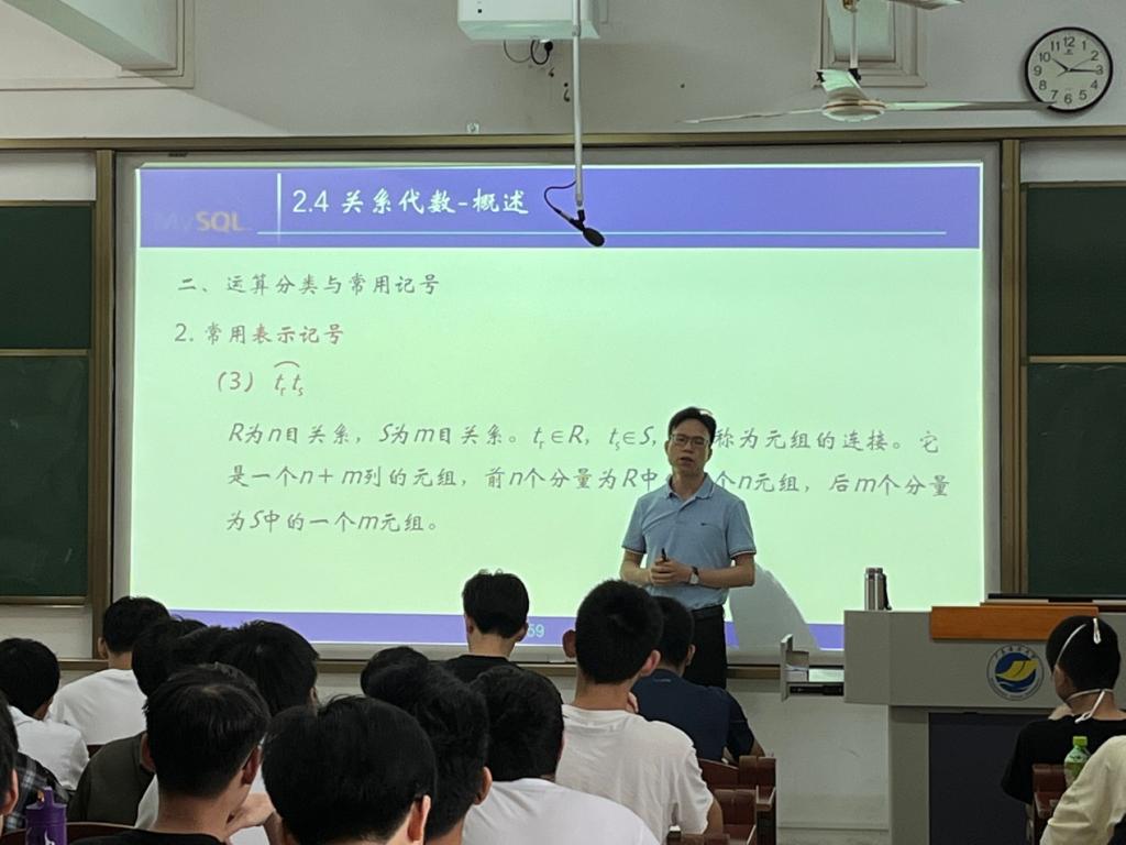 课堂上,冼远清围绕《数据库原理及应用》中的关系代数、传统综合运算、专门的关系运算等内容进行讲授,课堂上既穿插了启发式问题,也穿插了知识点练习,还有机地融入“课堂思政”元素,整个教学主题突出,结构清晰、思路清晰、内容丰富、逻辑性强,将相对枯燥的基本知识深入浅出讲解,语言表达松弛有度,声情并茂,富有感染力,得到在场观摩教师的肯定与赞赏。大家一致认为冼老师的公开课在教学内容、教学方法以及教学效果等方面均取得了较好的预期效果,对黑料网