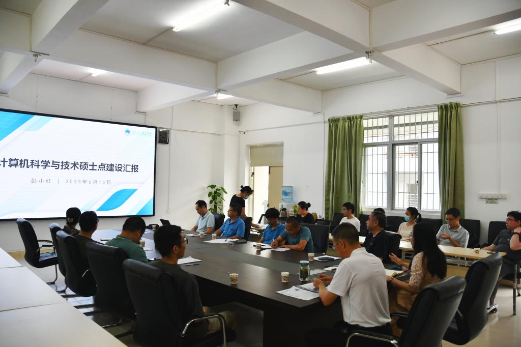 彭小红从总体概况、学科方向、师资队伍、课程体系、人才培养、成果情况、专项评估意见、建设任务等8个方面对计算机科学与技术硕士点建设情况进行了详细的汇报。副院长陈入云对近两年学位点评估情况进行了简要介绍。