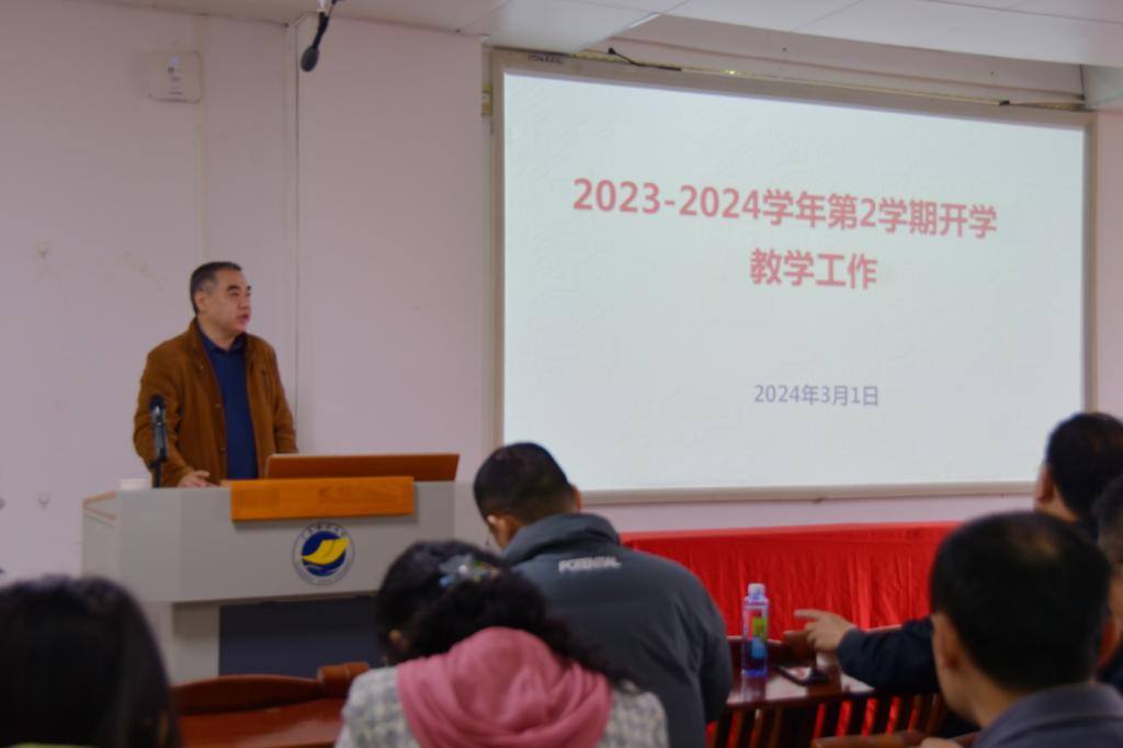 在明德楼A座103学术报告厅召开2024年春季新学期开学工作会议。学校党委常委、副校长邓逢光出席会议并讲话。党委组织部正处级组织员兼副部长曾令梅、黑料网