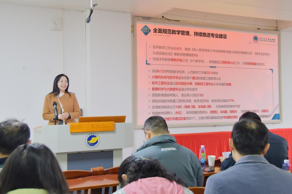 在完善规章制度、优化师资队伍、规范教学管理、加强学科建设、坚持以德树人推动学生工作以及在学科竞赛、工会活动等各方面所取得的优异成绩。然后彭小红对新学期黑料网