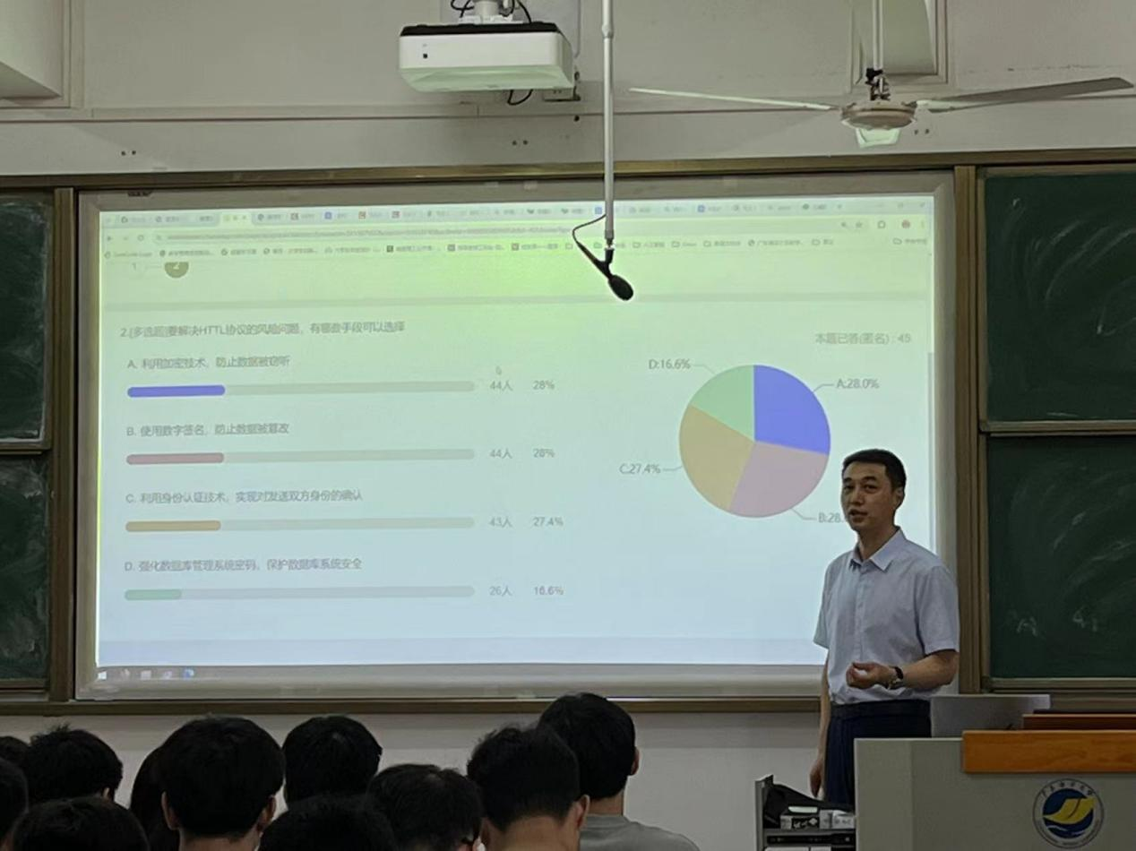 4月29日上午,车向前老师讲授了《信息安全技术》课程。课上,他首先回顾了HTTP协议面临的安全问题及解决方法,详细讲解了SSL/TLS等内容。彭小红院长主持观摩会并作点评,她指出,车老师的课堂互动性强,教学方式灵活,讲授条理清晰,教学成效显著。