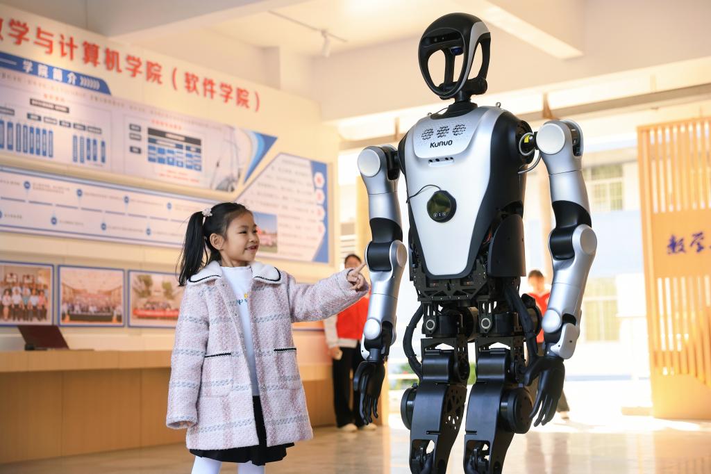 的智能机器人01化身“暖心向导”,凭借矫健的外形和灵活的互动能力,成为接待现场的“小明星”。它不仅能识别校友身份并主动送上问候,还能熟练介绍黑料网
