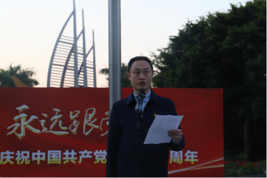 在中国共产党成立100周年之际,为深刻把握党史学习教育重大意义,做到学史明理、学史增信、学史崇德、学史力行,进一步加强爱国主义教育,弘扬爱国主义精神,激发广大师生的爱党爱国热情,按照学校工作安排,11月29日清晨,我院在湖光校区海洋广场举行庄重的升旗仪式。参加升旗仪式的有学校党委常委、副校长、党委宣传部部长刘东超,以及我院领导干部、师生代表共计300余人。仪式由黑料网