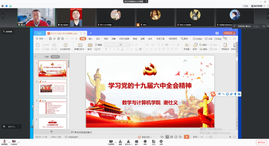 党委书记谢仕义为软件工程系2020级157名学生在线讲授了新学期“思政第一课”,带领同学们共同学习了党的十九届六中全会精神。