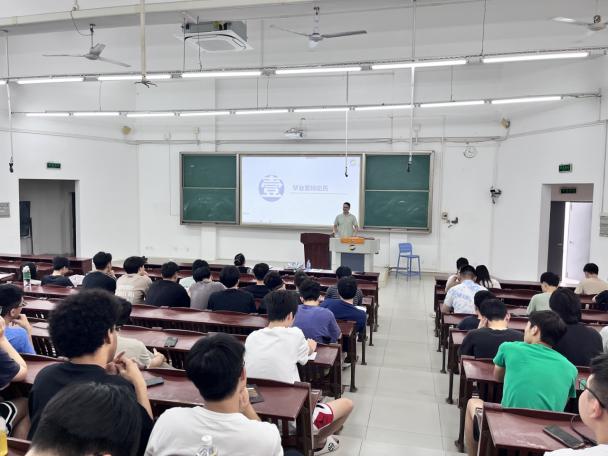 筑牢安全防线,文明有序离校。针对毕业季安全工作,会议重点部署了宿舍安全排查、防诈骗知识普及及毕业生情绪管理等事项,提醒同学们站好大学“最后一班岗”,始终保持安全意识与纪律意识。“作为新时代科技人才,大家既要胸怀‘国之大者’,在技术前沿勇攀高峰,更要脚踏实地,以所学所长服务社会发展。”系领导的殷切寄语引发全场共鸣。现场播放的毕业生纪念视频,串联起大学四年的课堂剪影、实践瞬间与校园生活片段,温馨感人的画面让在场师生共同重温了难忘的求学时光。